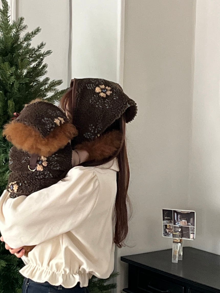 コーディネートされたヘアケア製品(フード、バラクラバ)と
