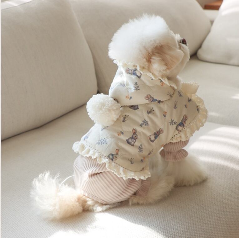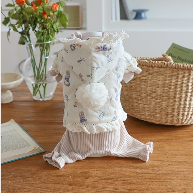 【予約】[FOND BLANC](purple)Bunny Quilted hooded Cape(リバーシブル)