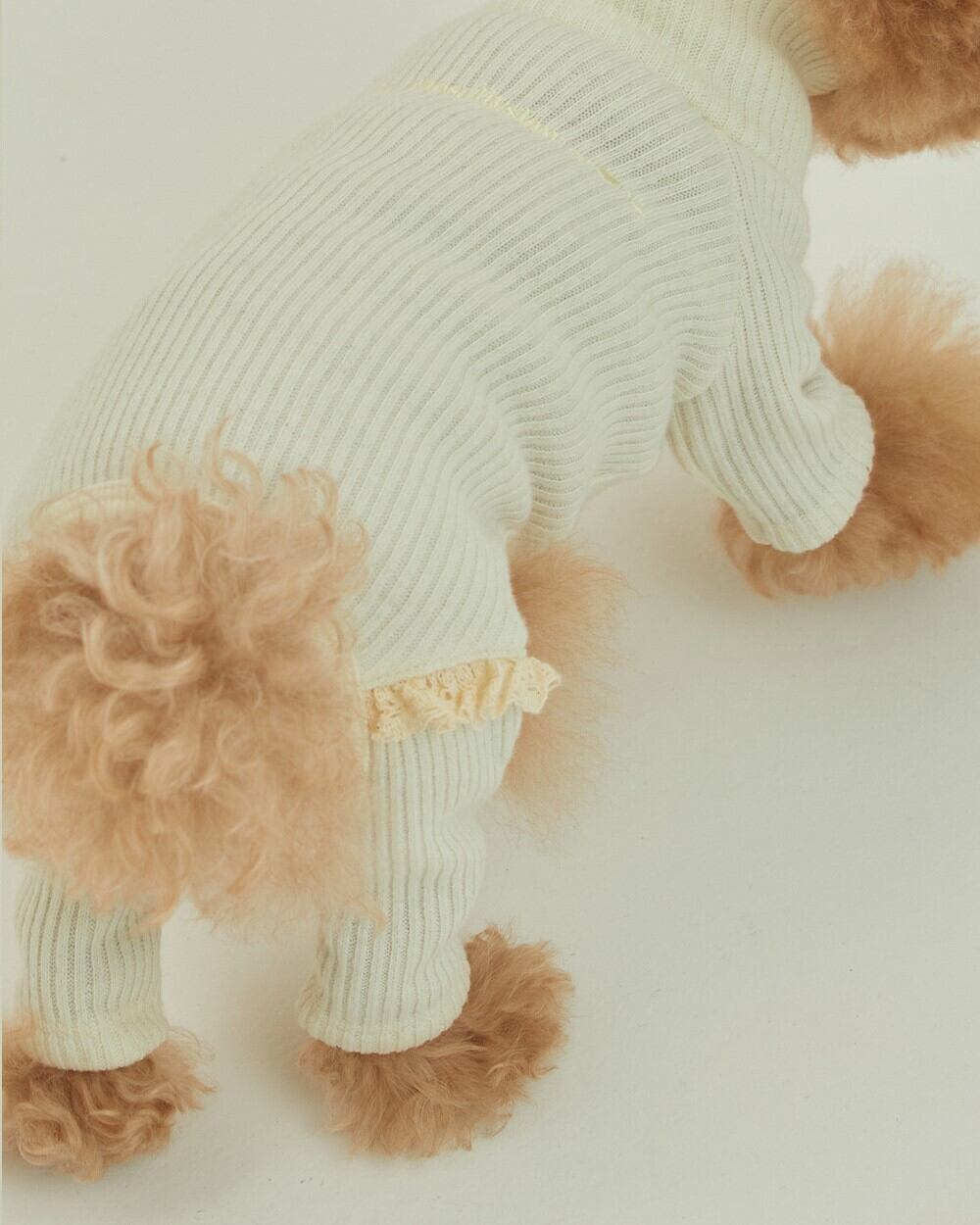 後ろ足の切開部の綿レースディテールは、愛らしい魅力を加えます。