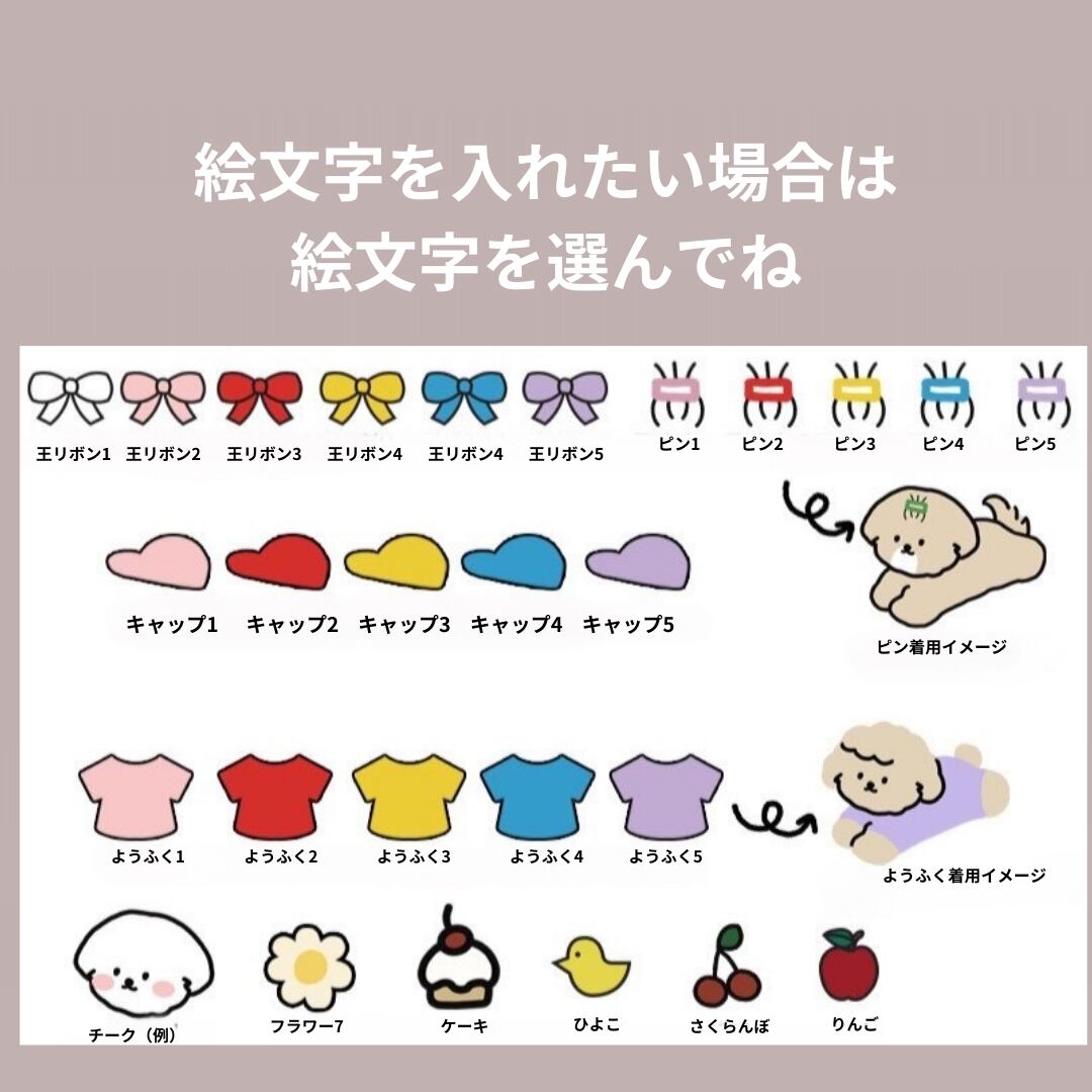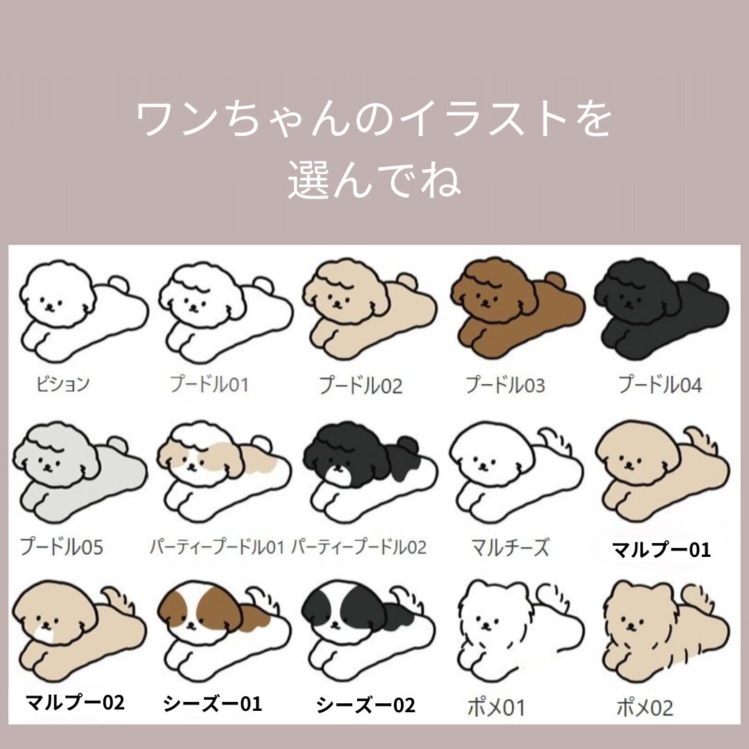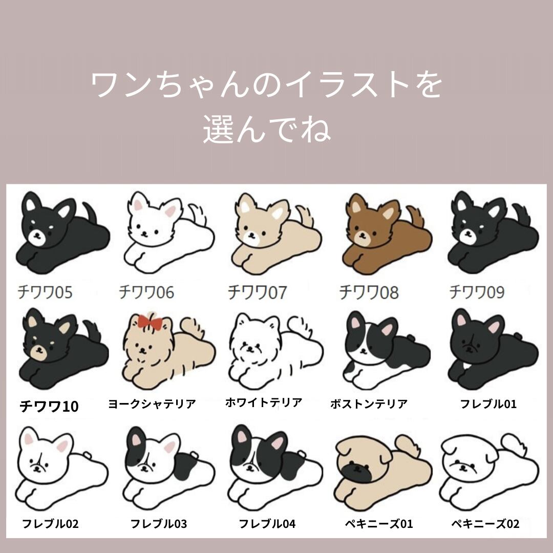 わんちゃんのイラストとイニシャルの部分に追加できます!