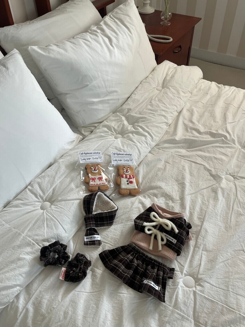可愛いチェック柄にふわふわのリボンがポイント!