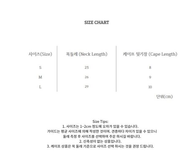 3.ケープ商品は首周りを基準にサイズ選択することをおすすめします。
