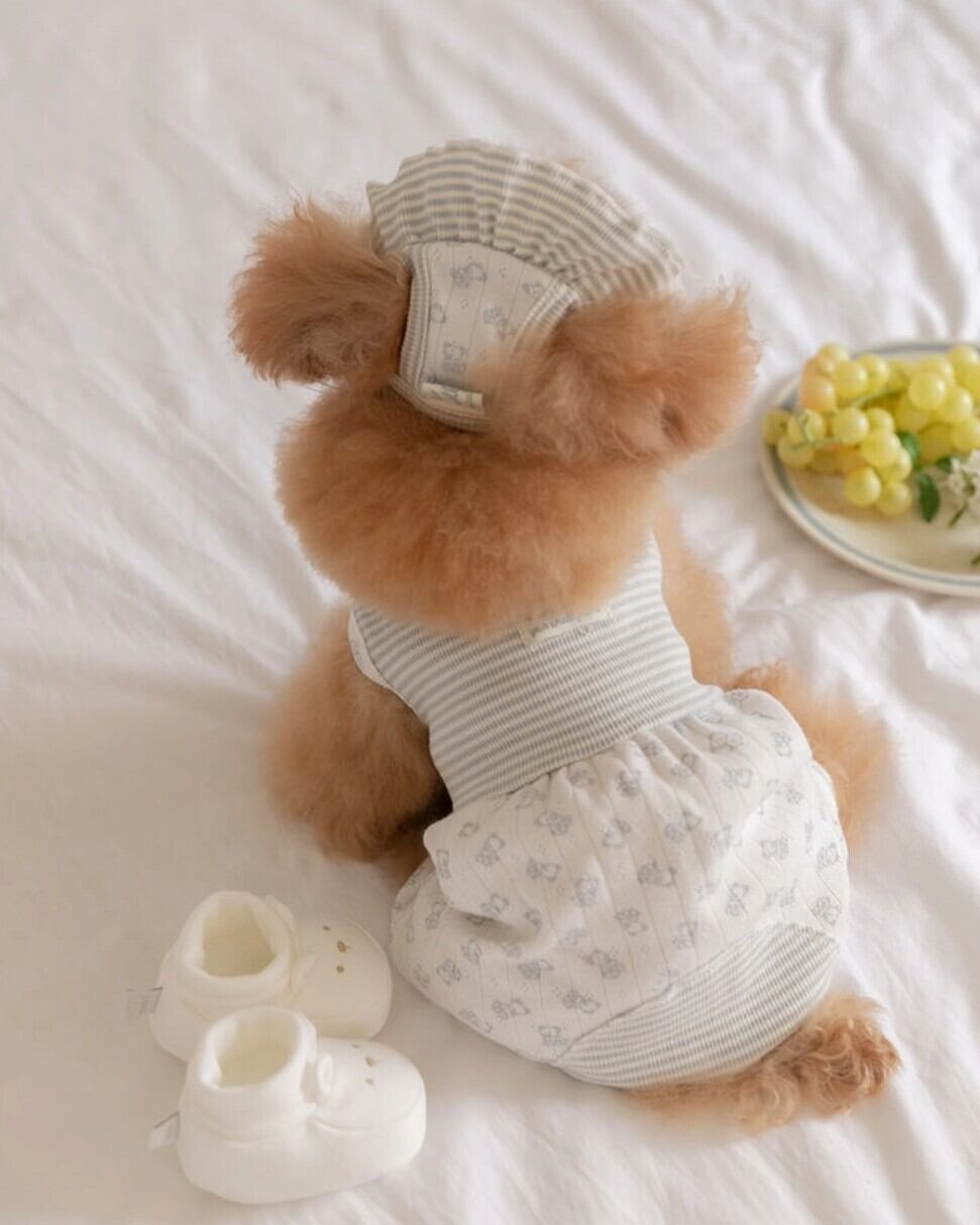 プチベアロンパースとスリーブレスのセットアイテム、プチベアボンネットです。
